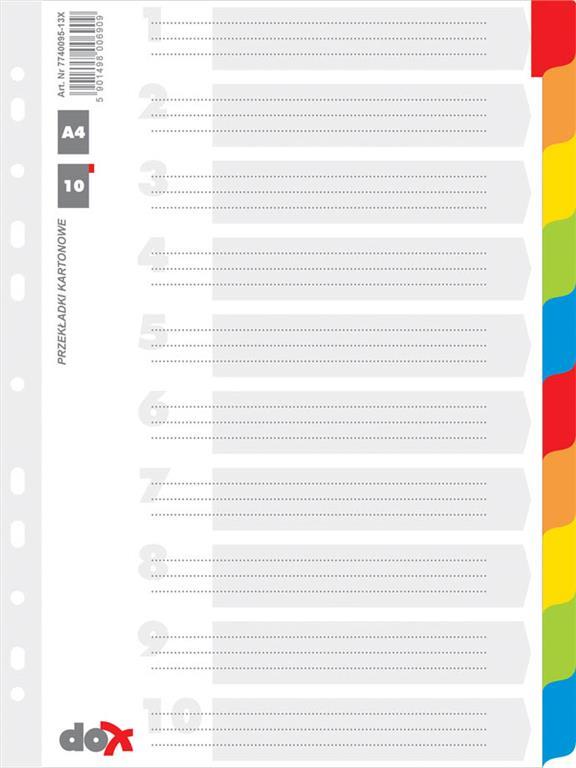 OFFICE PRODUCTS Ločilni listi 1/10 barvni, karton+plast.