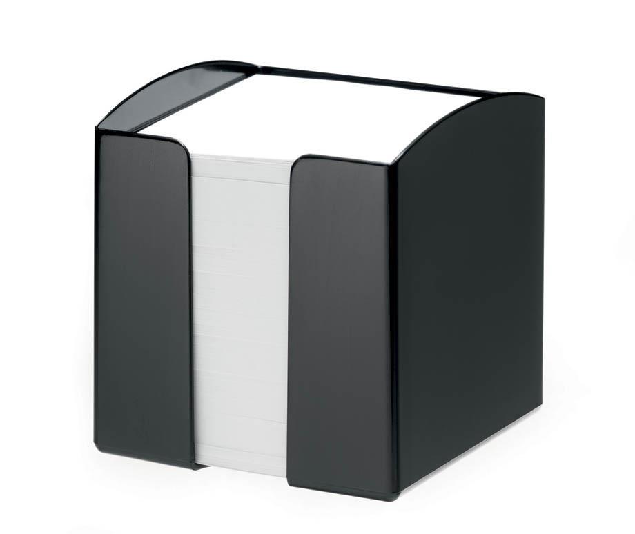 Praktično stojalo za lističe, napolnjeno z 800 belimi lističi dimenzije 90 x 90 mm.