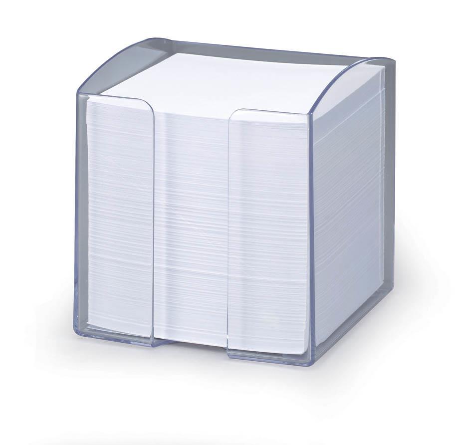 Praktično stojalo za lističe, napolnjeno z 800 belimi lističi dimenzije 90 x 90 mm.