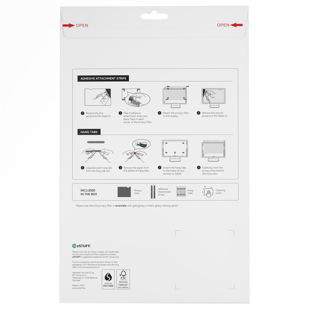 eSTUFF Gold Privacy Filter – Premium zaščita zasebnosti z zlatim pridihomDodajte plast razkošja svoji zaščiti zasebnosti. eSTUFF Gold Privacy Filter zagotavlja zaslon z visokim kontrastom in visoko ločljivostjo za uporabnika, medtem ko stranski opazovalci vidijo izrazit zlat ščit. To je zasebnost s slogom – idealno za strokovnjake, ki želijo izstopati in hkrati ostati zaščiteni.