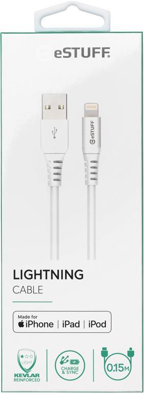 eSTUFF Lightning kabel MFI 0.15m, bel