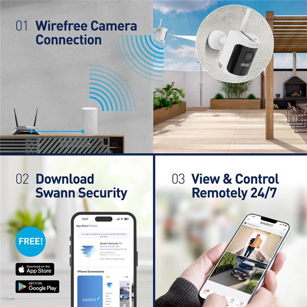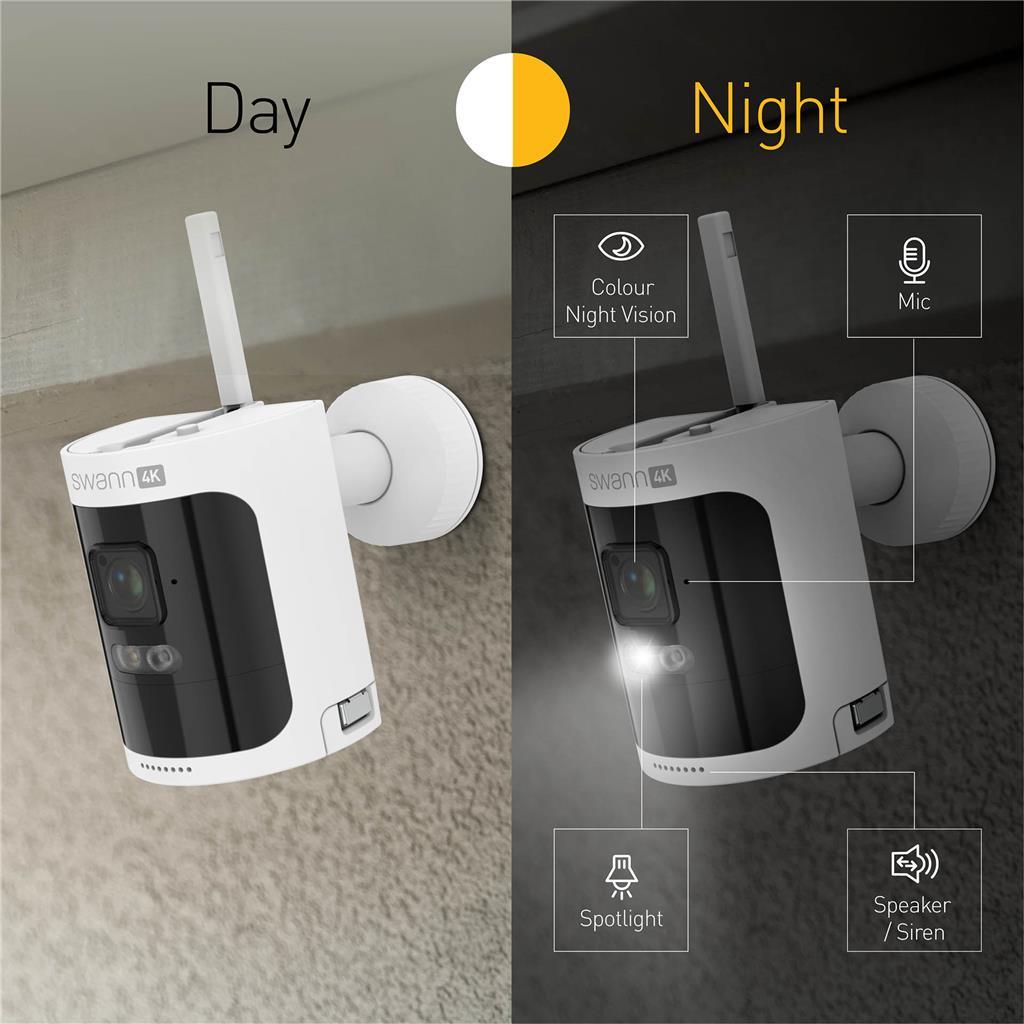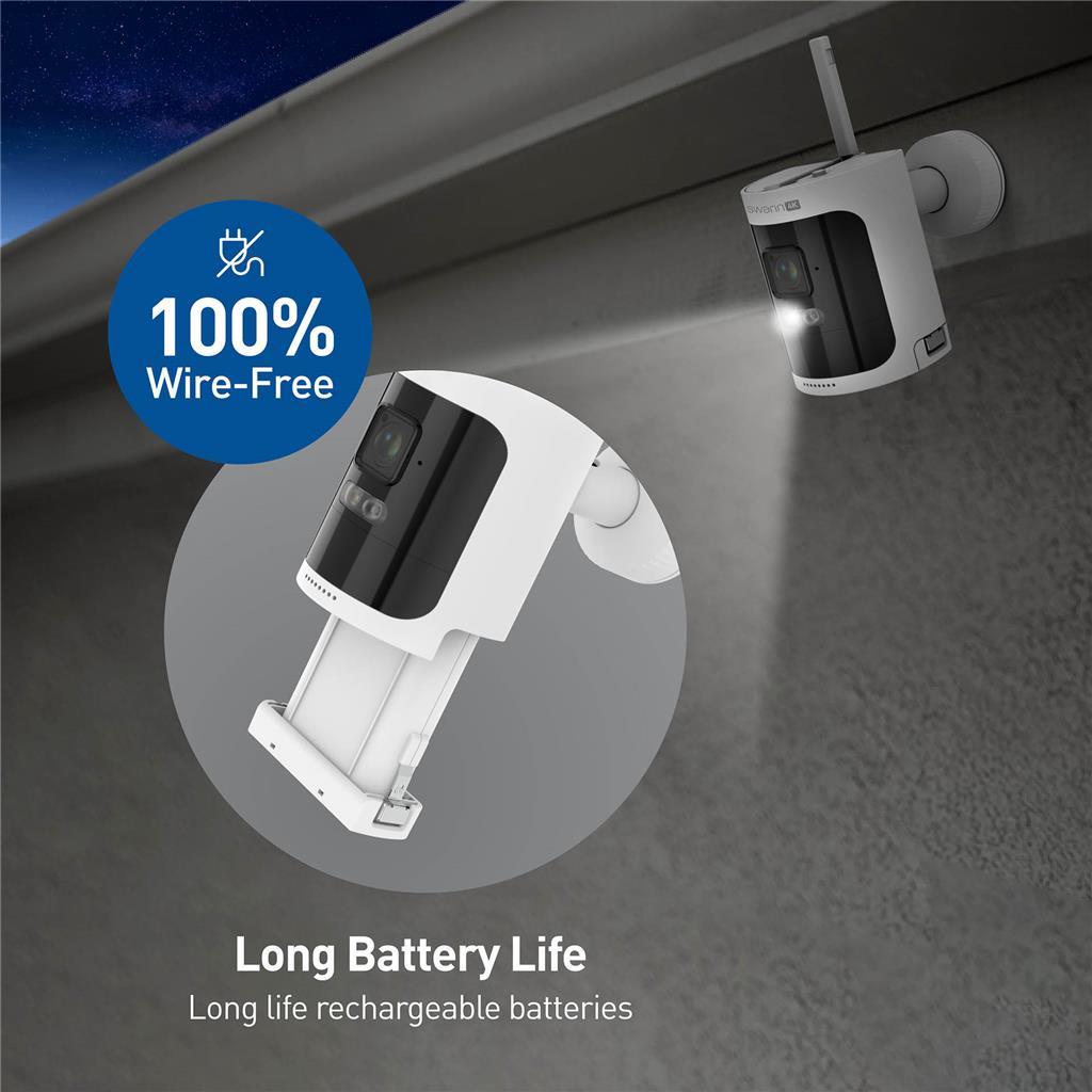 Doživite revolucionarno kombinacijo prilagodljivega, a preprostega nadzora in snemanja z brezžičnim varnostnim kompletom AllSecure4K. Kamere z dolgo življenjsko dobo in polnilnimi baterijami delujejo popolnoma brezžično, njihova montaža je enostavna, hkrati pa jih lahko namestite tja, kjer jih najbolj potrebujete. Opremljene so z močnimi reflektorji, dvosmernim zvokom, glasnimi sirenami in jih lahko upravljate prek aplikacije Swann Security. Pametna varnost – brez mesečnih stroškov.