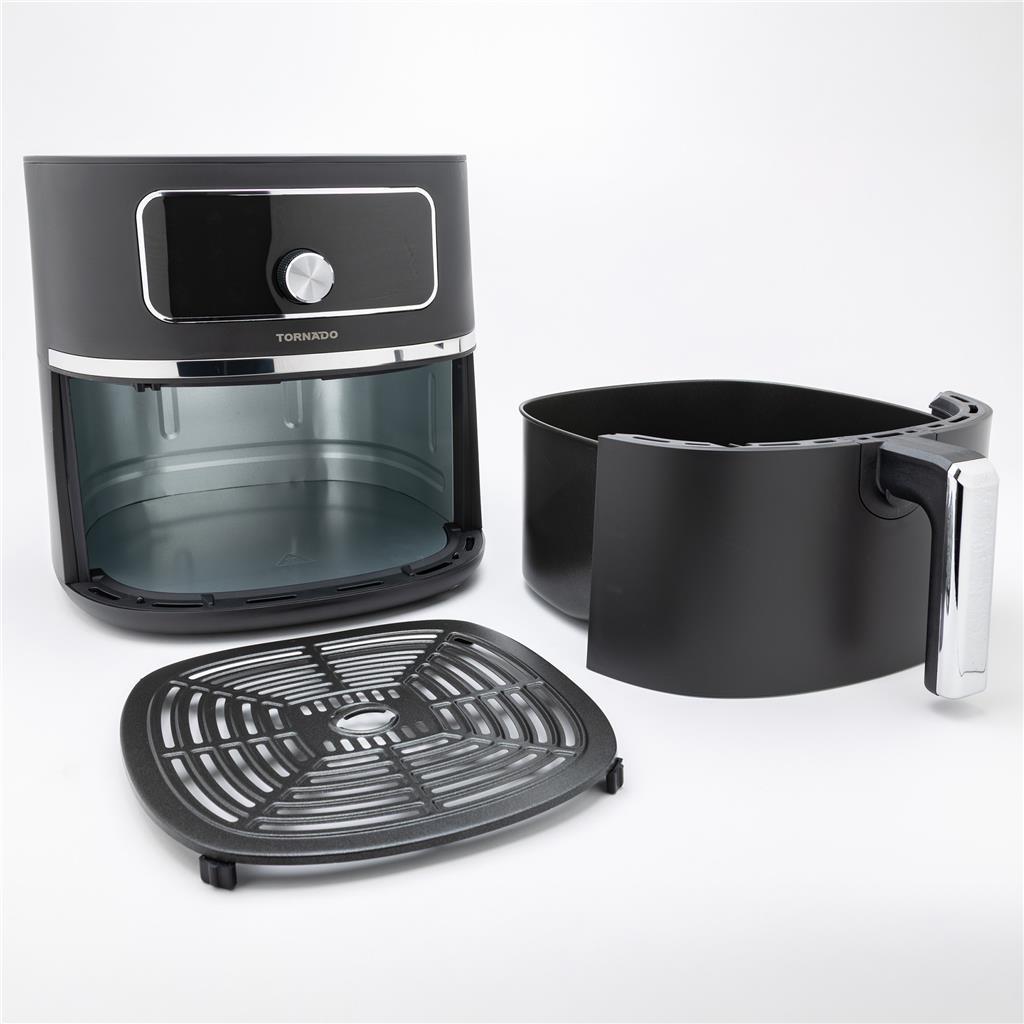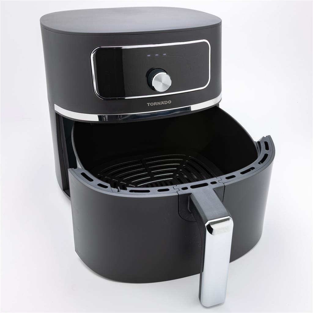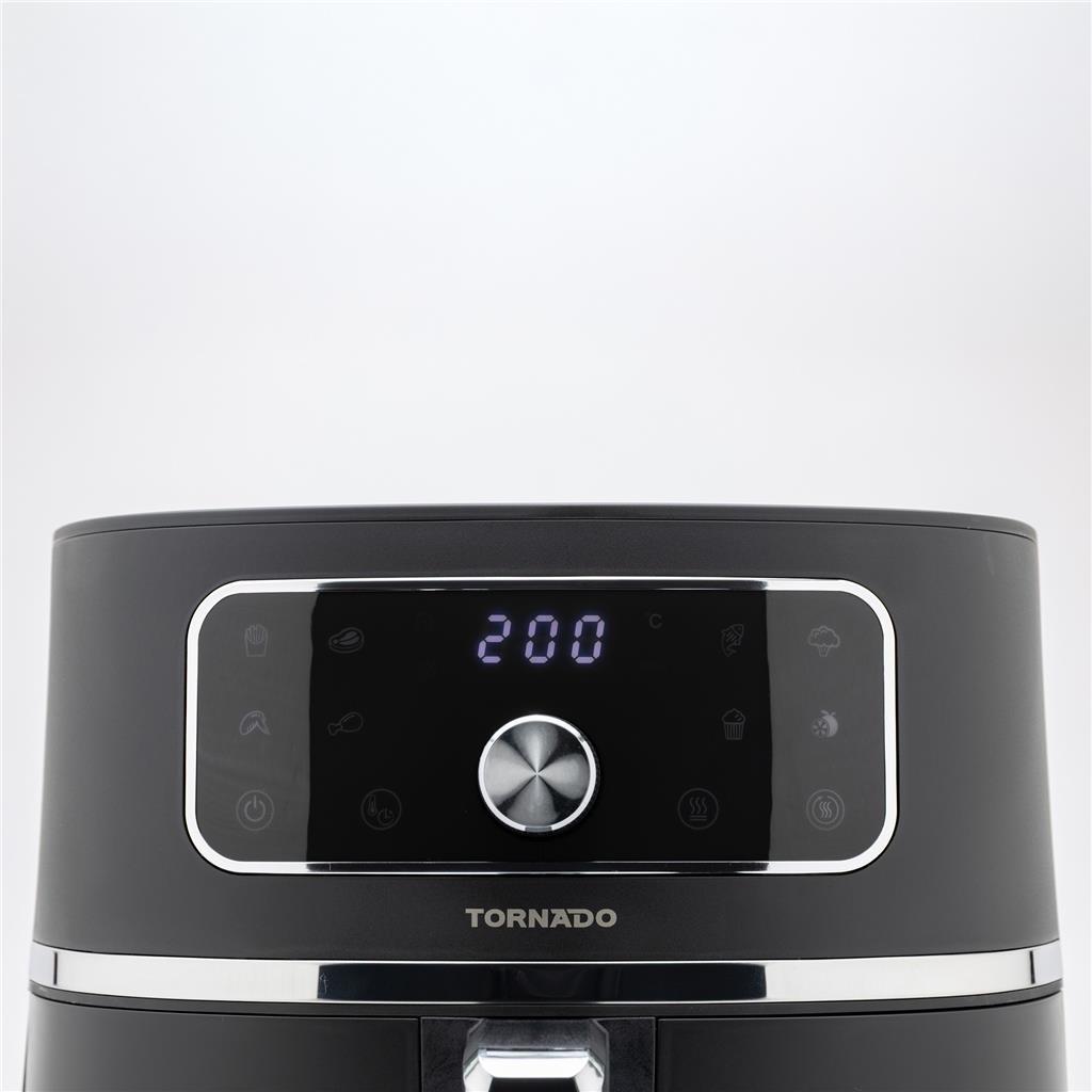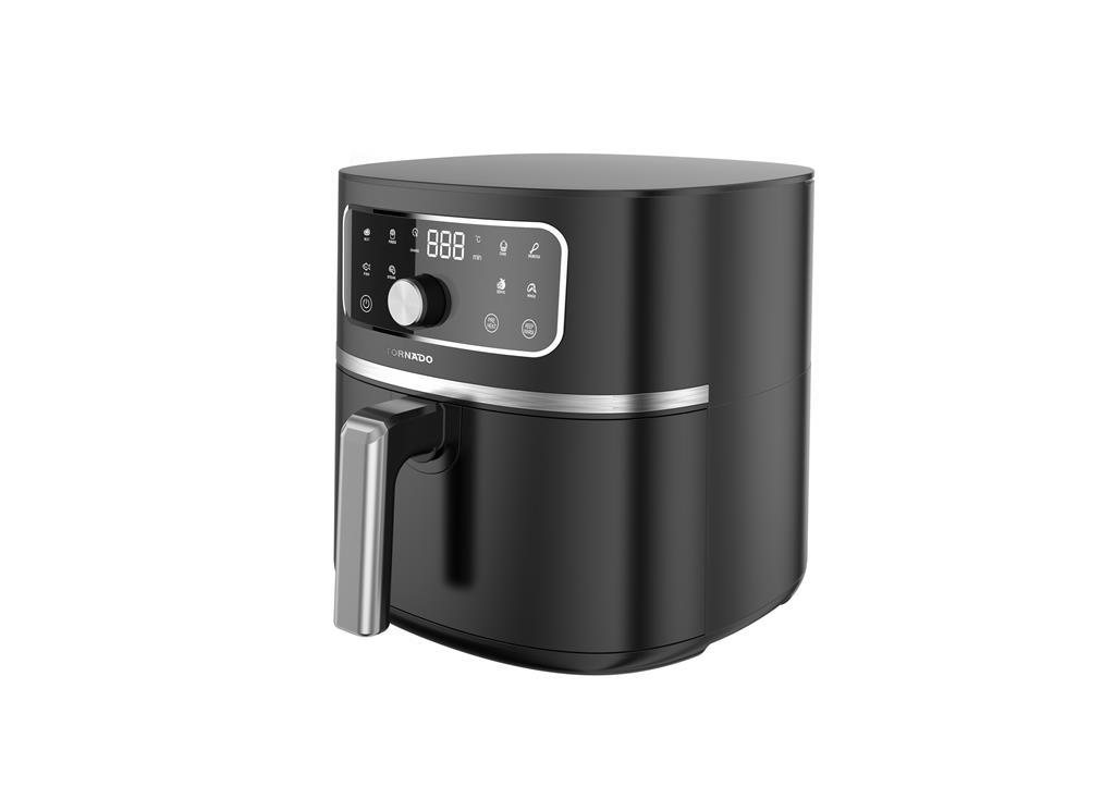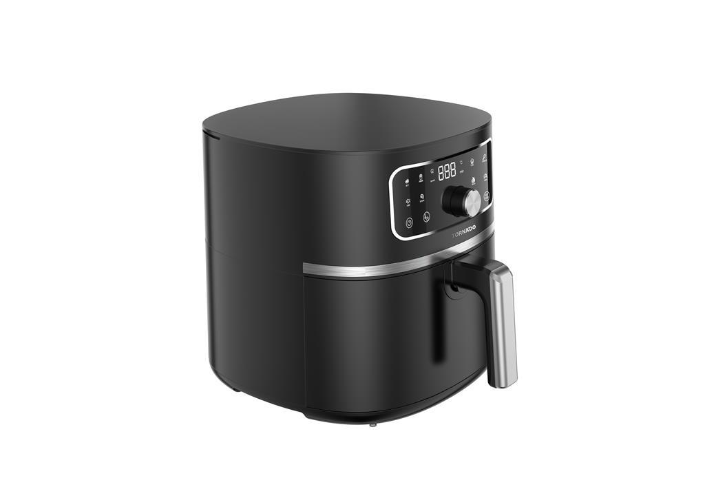 Tornado cvrtnik na vroč zrak omogoča bolj zdravo pripravo ocvrtih jedi z malo ali brez olja. S prostorno 5,7-litrsko posodo in zmogljivostjo 1450–1750 W je idealen za pripravo obrokov za vso družino. Elegantna matirana površina in dekorativni obroč iz nerjavnega jekla pa ga naredita tudi estetsko dovršen kuhinjski pripomoček.