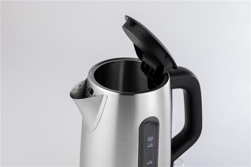 Higiensko ohišje iz nerjavečega jekla je trpežno in enostavno za čiščenje, pokrov s pritisnim gumbom pa omogoča varno upravljanje z eno roko. Snemljiv in pralni filter zagotavlja čisto nalivanje. Samodejni izklop in zaščita pred vretjem na suho pa zagotavlja varno in brezskrbno uporabo.