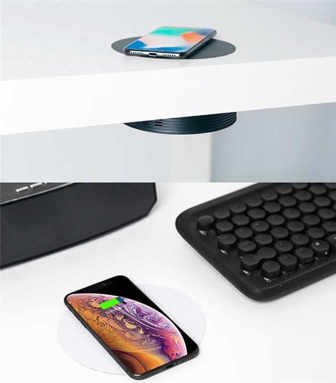 Brezžični polnilnik je popolnoma skrit in vidna je le tanka nalepka. Je minimalističen, funkcionalen in vodoodporen.