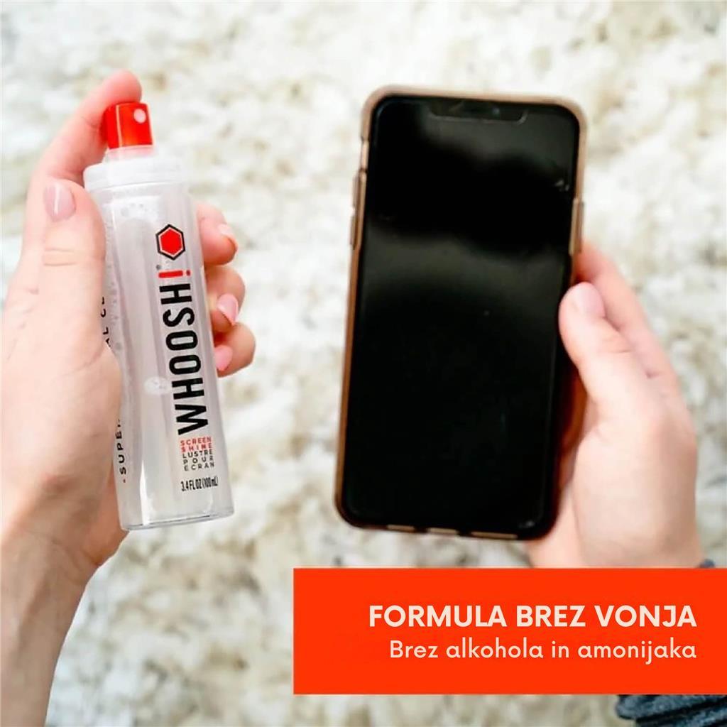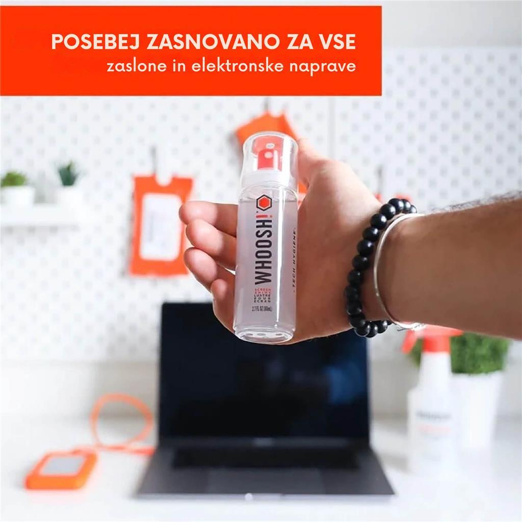 S kompletom za čiščenje zaslonov WHOOSH! Go Duo vam nikoli več ne bo treba skrbeti, da bo vaš zaslon umazan. To priročno čistilo za zaslone lahko preprosto vzamete s seboj, kamor koli greste. Njegova formula brez vonja zagotavlja prijetno čiščenje, poleg tega pa ne vsebuje alkohola in amoniaka.